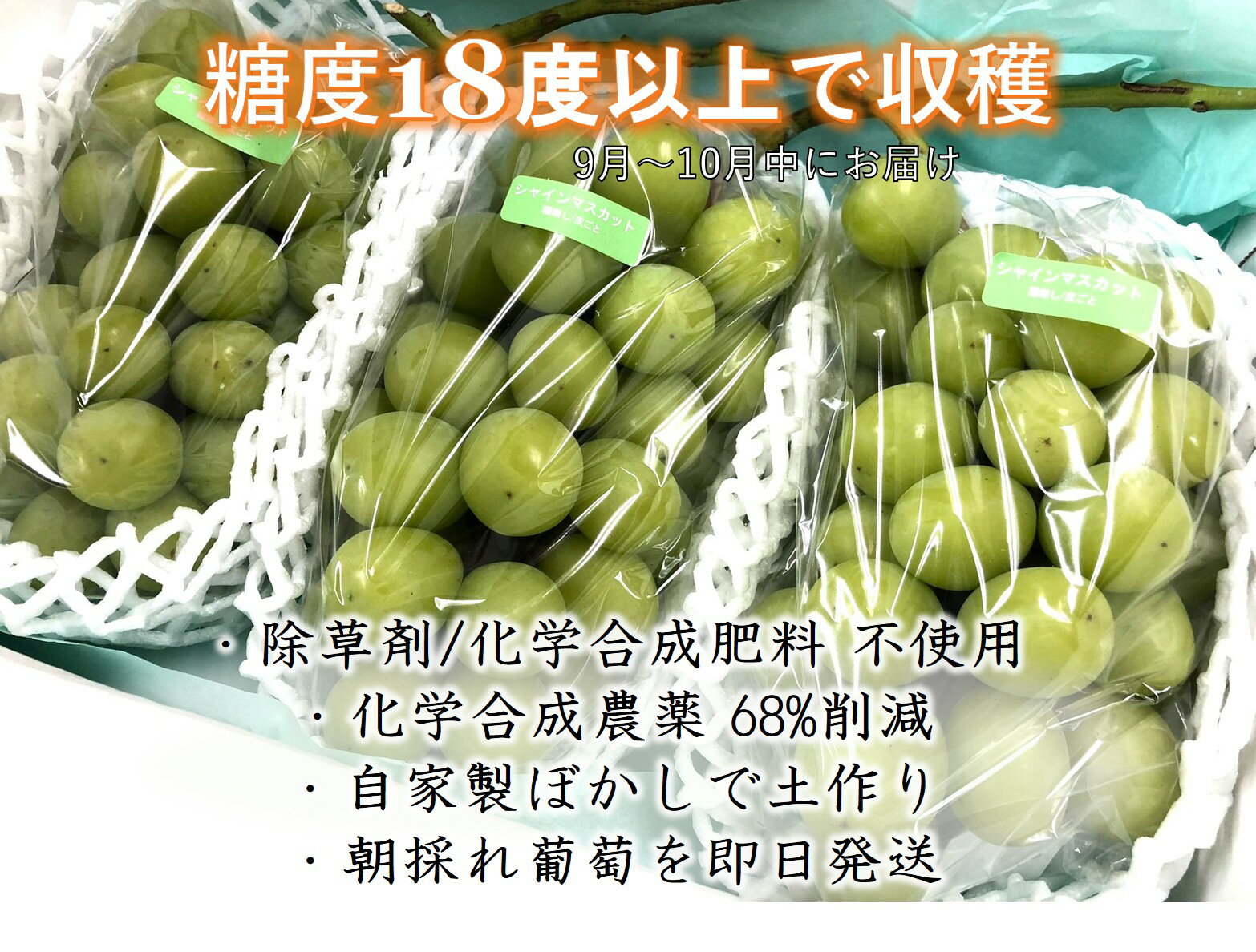 - 【ふるさと納税】<2026年発送先行予約>【自然に優しいシャインマスカット3房】栽培期間中の農薬節減で美味しいシャインマスカット(約1.8kg) ふるさと納税 おすすめ 山梨県 南アルプス市 送料無料 ALPEF001