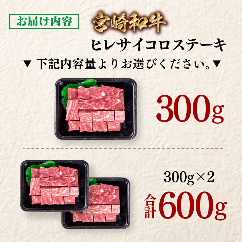 - 【ふるさと納税】「宮崎和牛」ヒレサイコロステーキ(300gまたは600g) 小分け 選べる内容量<2.8-7>希少部位 国産 牛肉 YAMA