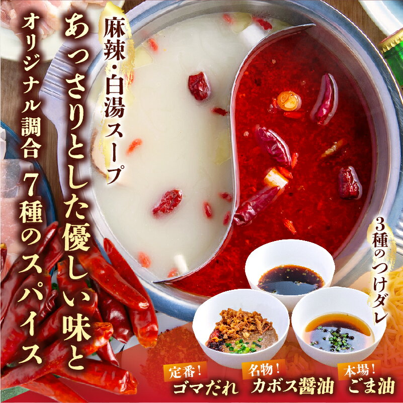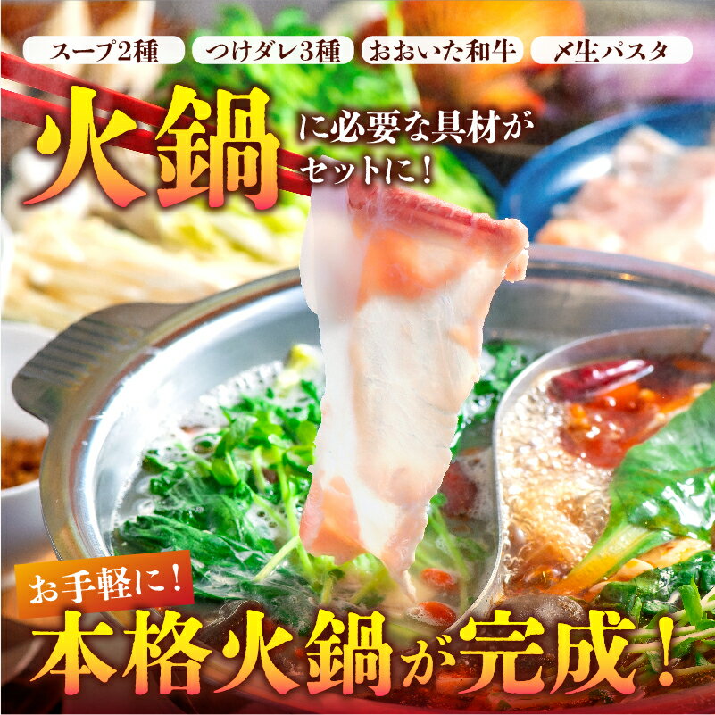 - 【ふるさと納税】火鍋 4人前 セット 鍋セット 食品 加工品 麻辣 白湯 スープ 豚肉 鶏肉 羊肉 和牛 生パスタ 魚卵団子 芋麺 餃子 オリジナル 薬膳 スパイス つけタレ かぼす醤油 ごま油 中華料理 おすすめ お取り寄せ グルメ 大分県 別府市 送料無料