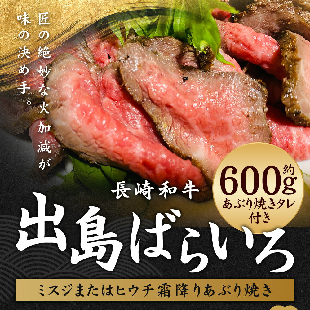 【ふるさと納税】長崎和牛 出島ばらいろ ミスジまたはヒウチ 霜降りあぶり焼き 約600g 牛肉 お肉 赤肉 希少部位 タレ たれ 惣菜 化粧箱入り 冷凍 長崎県産 国産 九州 長崎県 長崎市 送料無料
