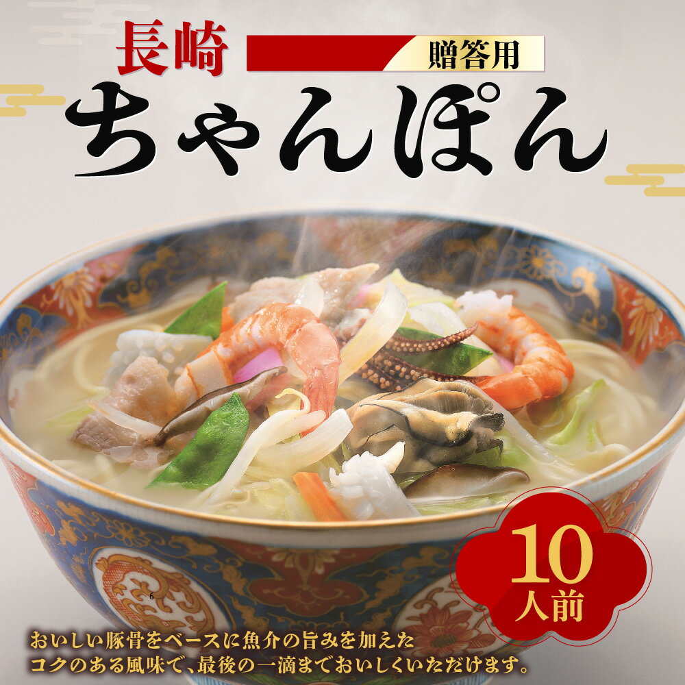 - 【ふるさと納税】【7営業日以内発送】【贈答用】長崎 ちゃんぽん 10人前 チャンポン 半生麺 太麺 スープ 麺類 豚骨 魚介 ギフト プレゼント 贈り物 崎県 長崎市 送料無料