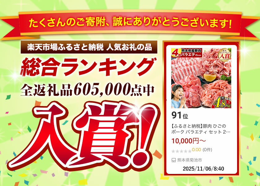 【ふるさと納税】豚肉 ひごの ポーク バラエティ セット 2.4kg 4.8kg 豚肉 しゃぶしゃぶ 切り落とし 豚ロース バラ 豚バラ スライス 以上 定期便 真空 お楽しみセット 不揃い 数量限定 簡易包装 冷凍配送 小分け 豚肉