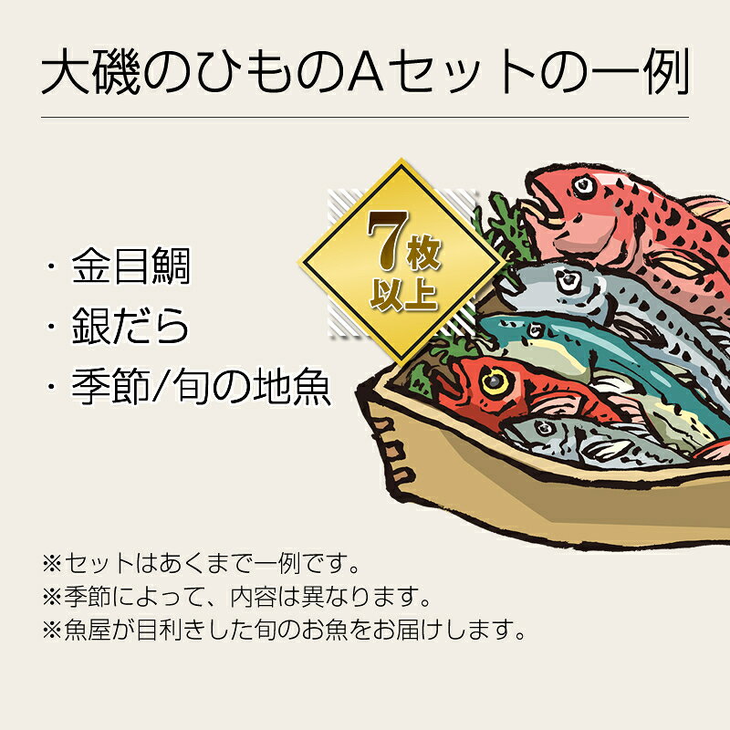 - 【ふるさと納税】【定期便3か月】おおいその干物Aセット(7枚以上)/ 季節で変わる旬な訳あり品 【 ひもの 魚 天日干し 神奈川県 大磯 湘南 特産品 3回お届け 神奈川県 大磯町 自家製干物 贈答品 地魚 お歳暮・お中元 大磯グルメ 】