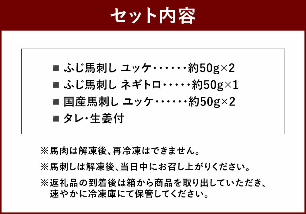 - 【ふるさと納税】熊本特産 馬刺し ユッケ 食べ比べ セット 各50g 計250g 3種 タレ 生姜付き 馬刺しユッケ ネギトロ 馬刺 馬肉 肉 お肉 ご飯のお供 おつまみ お取り寄せ グルメ 冷凍 九州 熊本県 高森町 送料無料