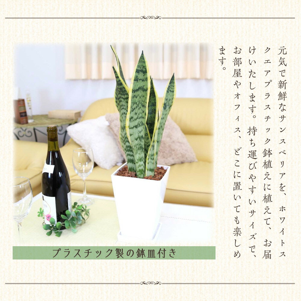 【ふるさと納税】《先行予約》サンスベリア 5号 ホワイトスクエアプラスチック鉢 土の表面:ウッドチップ | 植物 プラント 人気 おすすめ 送料無料