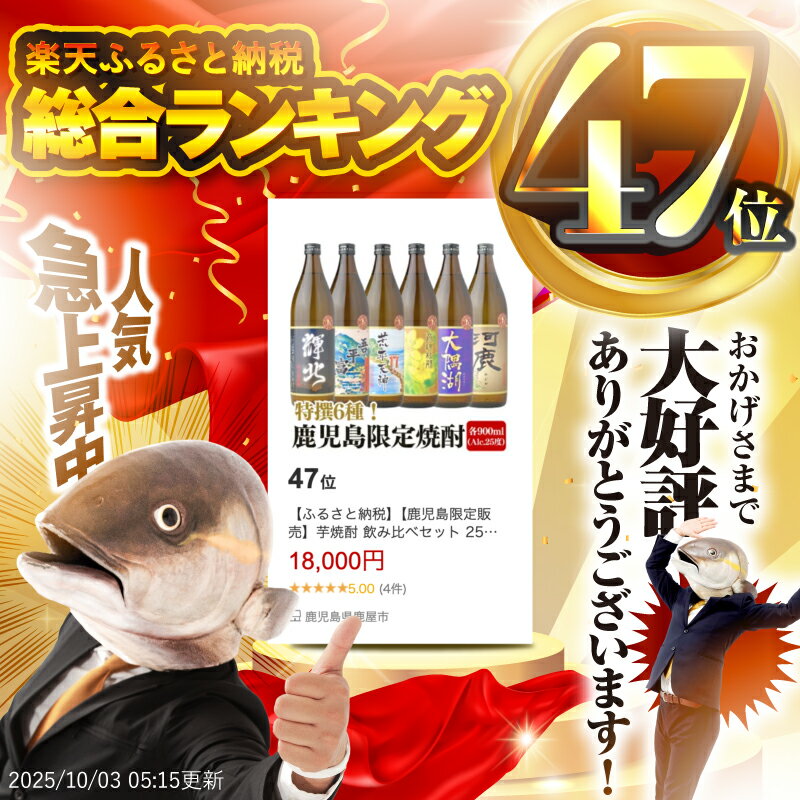 - 【ふるさと納税】【鹿児島限定販売】芋焼酎 飲み比べセット 25度 900ml×6本 輝北 吾平富士 荒平天神 高隈杜鵑 大隅湖 河鹿 酒 焼酎 飲料 飲み比べ セット 神川酒造 三浦屋オリジナル 三浦屋 鹿児島 おすすめ ランキング プレゼント