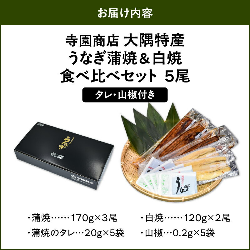 【ふるさと納税】大隅特産うなぎ蒲焼3尾(510g)・白焼2尾(240g)食べ比べセット【国産】 国産ウナギ 冷凍 たれ付 山椒付き 鰻かばやき うなぎ蒲焼 うなぎ白焼き 鹿屋市 鹿児島県産【株式会社寺園商店】