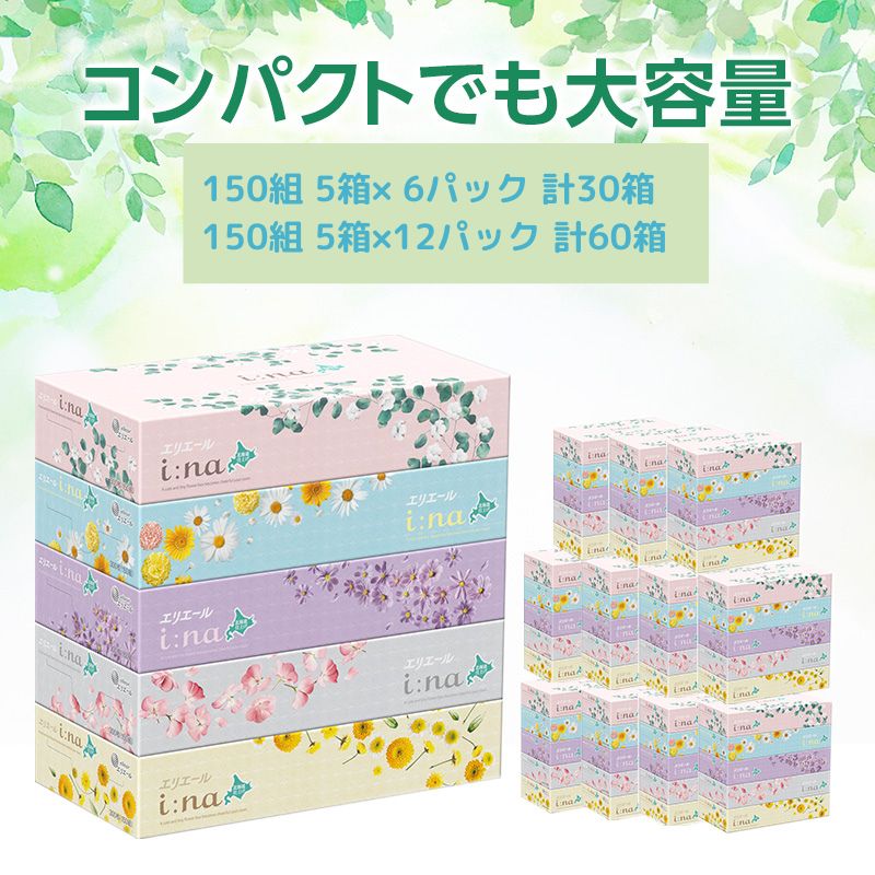 エリエール イーナ 北海道ティッシュ 150組5箱×12パック 計60箱