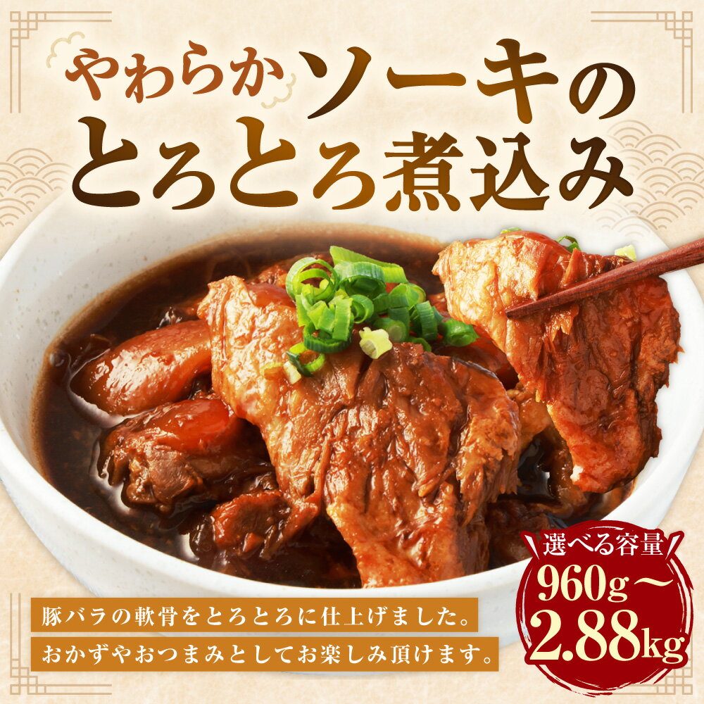 【ふるさと納税】【訳あり】やわらかソーキのとろとろ煮込み <選べる内容量> 6パック/12パック/18パック 1パック160g 計960g/計1.92kg/計2.88kg 豚肉付き軟骨 豚バラ 豚肉 お肉 甘辛 タレ たれ 惣菜 おかず ごはんのお供 ご飯のお供 おつまみ お酒のお供 国産 冷凍