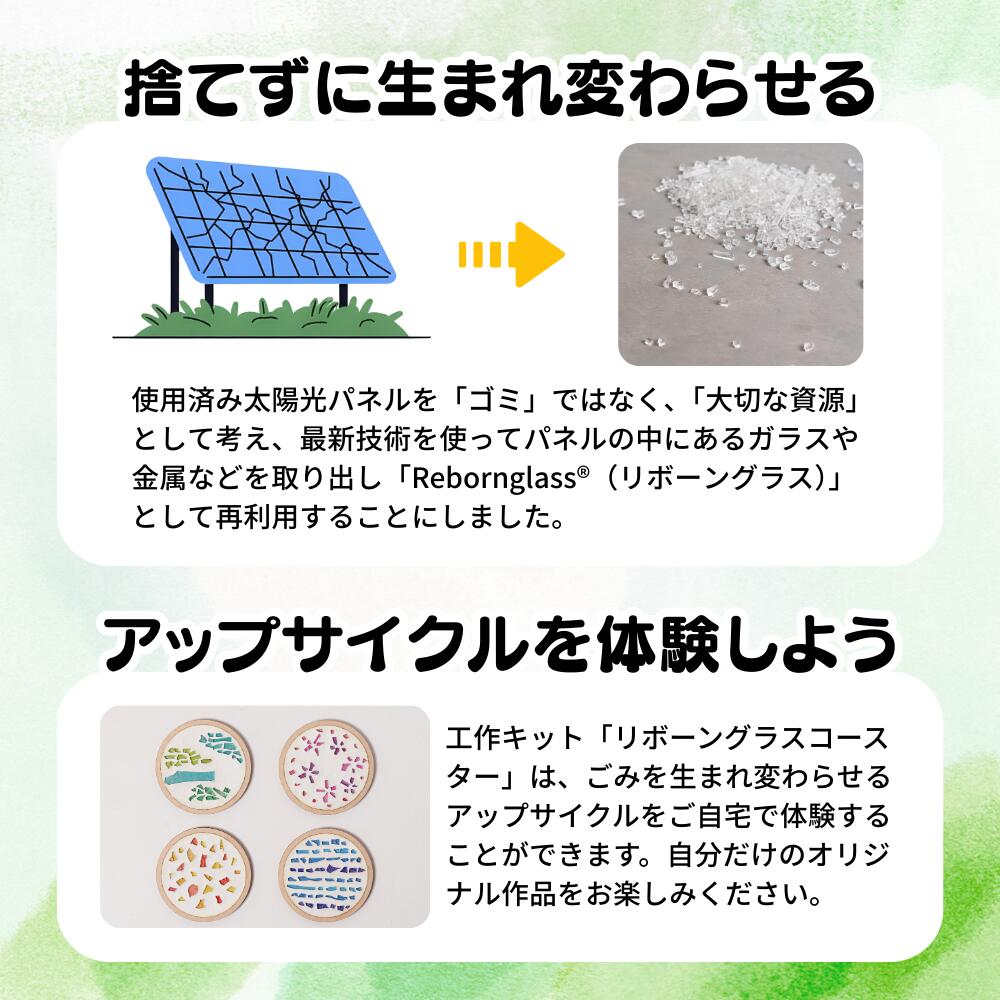 【ふるさと納税】太陽光パネルをアップサイクルしたエコ工作キット「リボーングラスコースター」|Rebornglass?使用・サステナブルな手作りコースター|SDGs学習・親子で楽しむ環境教材 R-ms-A01A 工作キット SDGs 環境配慮 体験型 返礼品 リサイクル 夏休み 自由研究