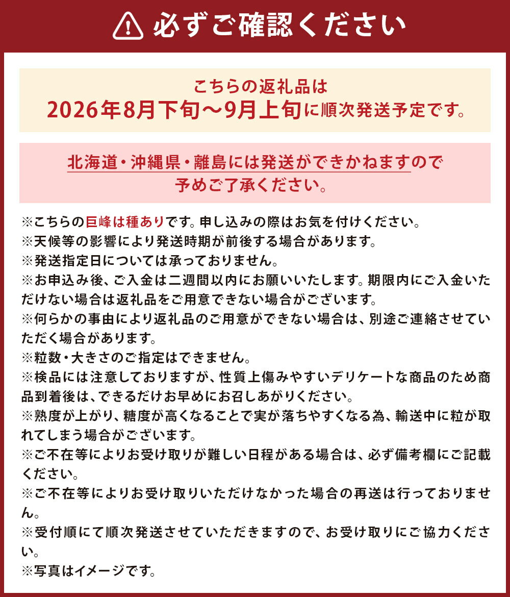 <2026年発送 先行受付>『数量限定』山梨市産種無し巨峰2房入 約1kg【1622448】