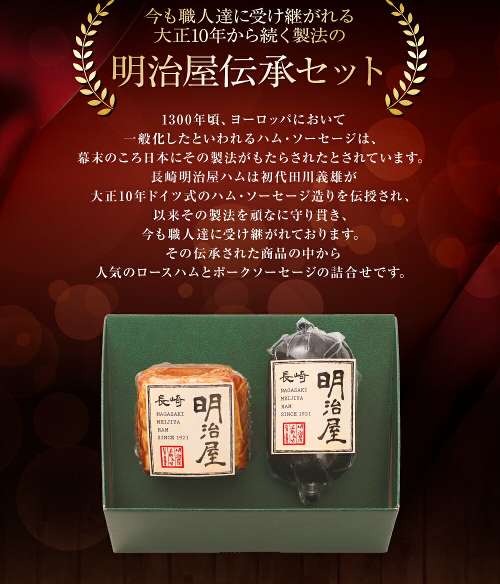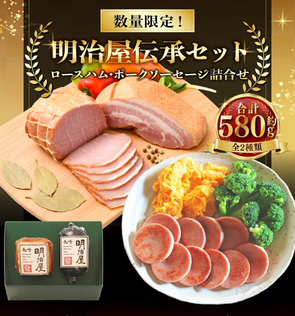 【ふるさと納税】【数量限定】明治屋伝承セット ロースハム(320g×1) ポークソーセージ(260g ×1) 詰め合わせ セット 豚ロース肉 豚肉 お肉 惣菜 おかず ご飯のお供 冷蔵 長崎県 長崎市 送料無料