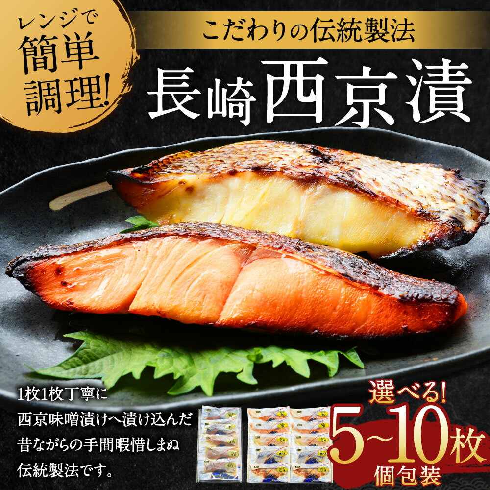 - 【ふるさと納税】【期間限定!12月31日まで一部寄附額改定中】こだわりの伝統製法 長崎西京漬 選べる枚数 ( 5枚 /10枚 ) | 伝統製法 レンジ調理 真空パック 冷凍西京漬 こだわり お手軽 冷凍 魚介 海鮮 人気 おかず 魚 真空パック 個包装 9000~13000円 長崎旬彩出島屋