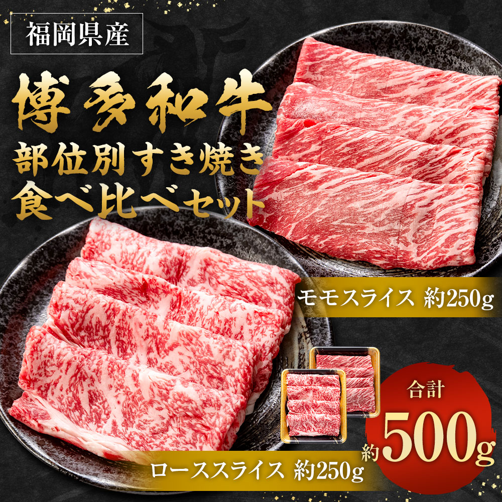 - 【ふるさと納税】博多和牛の部位別すき焼き食べ比べセット 合計約500g モモスライス 約250g + ローススライス 約250g 国産 和牛 博多和牛 牛肉 焼肉 すき焼き しゃぶしゃぶ 鍋 食べ比べ スライス 九州産 福岡県産 送料無料