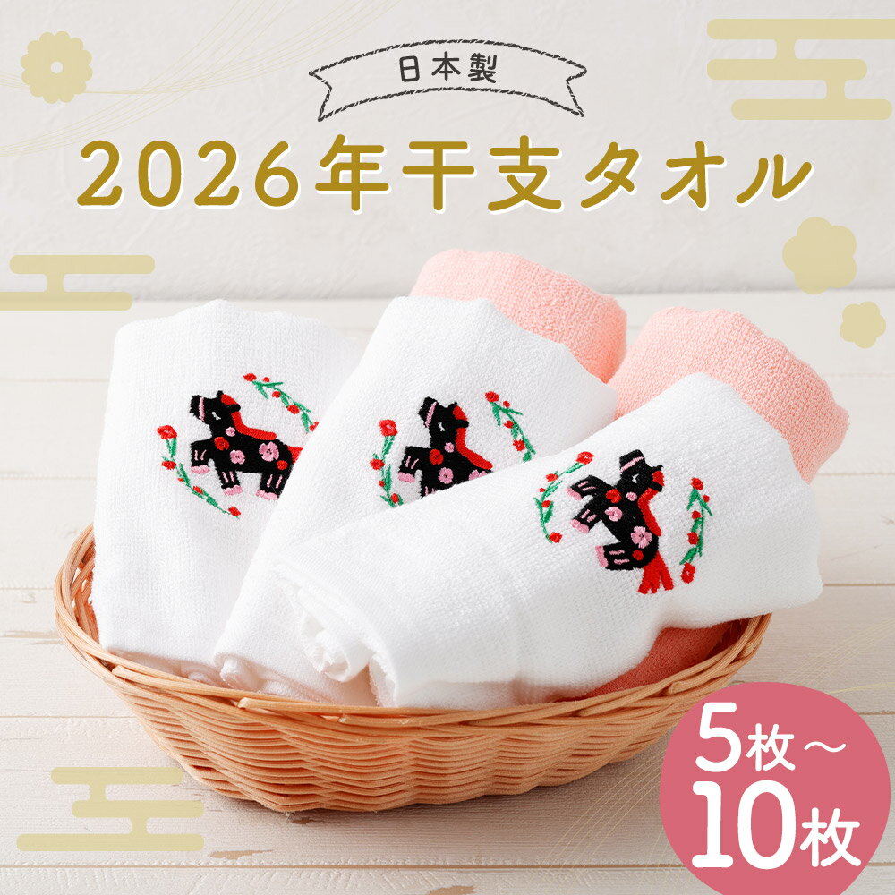 【ふるさと納税】 2026年干支タオル 5枚/10枚 選べる内容量 年内配送 2種類 ピンク ホワイト 干支 タオル ハンドタオル 日本製 綿100% ギフト 贈り物 送料無料 【2026年2月下旬迄発送】