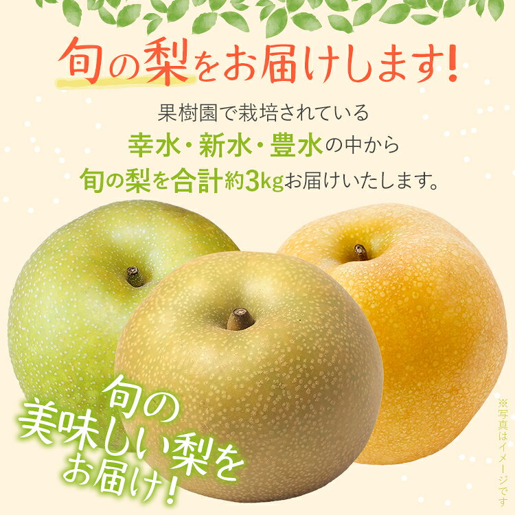 - 【ふるさと納税】期間限定 先行予約 旬の梨 松木果樹園 約3kg 《7月下旬〜9月上旬に順次出荷予定》 幸水 新水 豊水 農家直送 樹上完熟 甘い ジューシー フルーツ 果物 果汁 ギフト 福岡県 福岡 九州 グルメ お取り寄せ