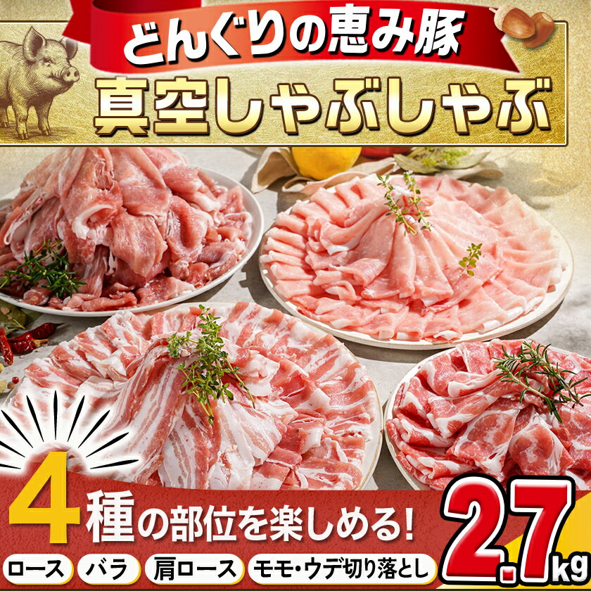 - 都城産豚「どんぐりの恵み」真空しゃぶしゃぶ2.7kgセット - 国産豚肉/宮崎県産豚肉 豚しゃぶしゃぶ肉 豚ロース肉/豚バラ肉/肩ローススライス肉/モモ・ウデ切落し 送料無料 MJ-1108【宮崎県都城市は令和2年度ふるさと納税日本一!】