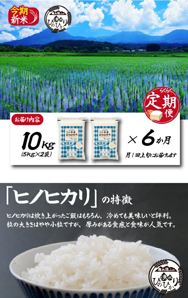 - 【ふるさと納税】【お米の定期便/6か月コース】\無洗米/霧島連山の湧水ヒノヒカリ(定期便 国産 米 無洗米 精米済み 送料無料)