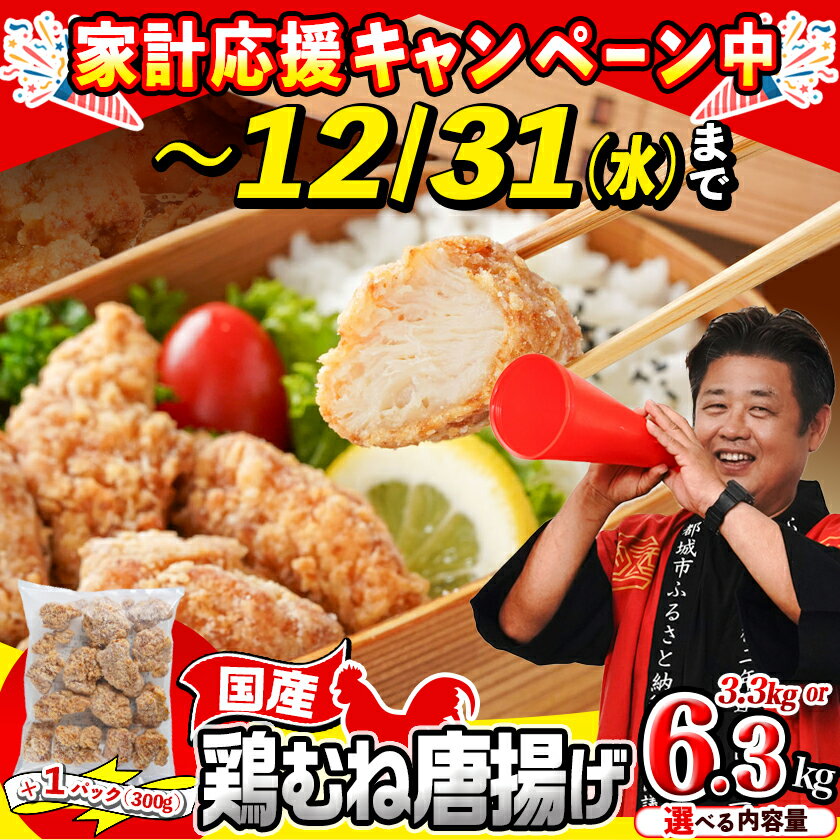 - 【ふるさと納税】【期間限定☆家計応援】【内容量&発送時期が選べる!】国産鶏むね唐揚げ - 国産鶏むね肉 唐揚げ 簡単調理 鶏から揚げ 鶏ムネ肉からあげ おかず 選べる内容量 3.3kg/6.3kg クリスマス 送料無料 SKU-1523【宮崎県都城市は2年連続ふるさと納税日本一!】
