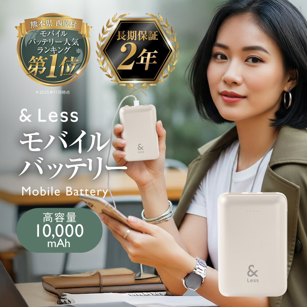 【ふるさと納税】モバイルバッテリー 10000mah ( ブラック ) 日本製 2年保証 3出力充電 軽量 小型 大容量 iphone アイフォン 充電器 Type-c タイプc USBケーブル スマホ充電器 3台同時充電 コンパクト 持ち運び 旅行 防災グッズ【&Less】