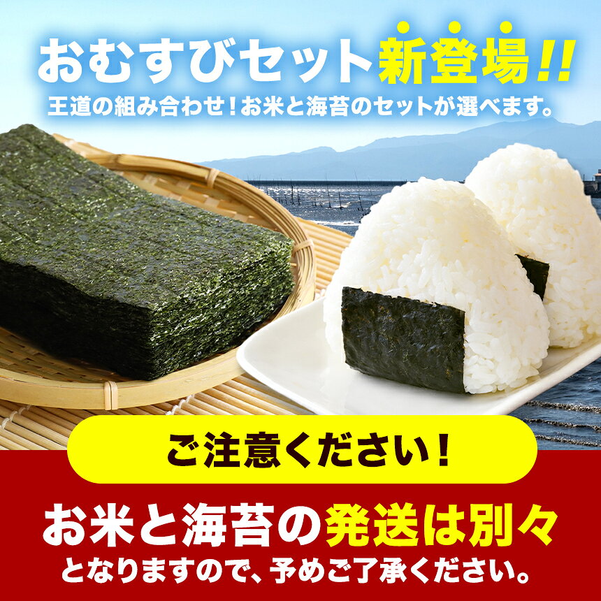 - 【ふるさと納税】選べる 内容量 訳あり 焼き海苔 半切り or おむすびセット 米 くまさんの輝き 無洗米 5kg 60枚 100枚 200枚 300枚 ご家庭用 | 玉名 熊本 海苔 のり