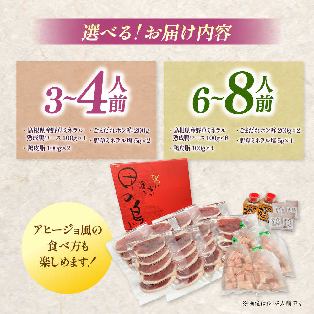 - 【ふるさと納税】【選べる容量】【先行予約】【2026年1月中旬順次発送】焼肉 TVで紹介されました!島根県産野草ミネラル熟成鴨の焼肉セット(3〜8人前) 鴨鍋 鴨肉 焼肉 しゃぶしゃぶ 人気 おすすめ 肉 お肉 島根県雲南市/鴨専門店カナール[AIDC001]