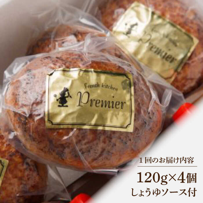 - 【ふるさと納税】【6回定期便】黒毛和牛100% 手ごねハンバーグ 120g×4個 しょうゆソース付/フレンチキッチン プルミエ[UCF013]