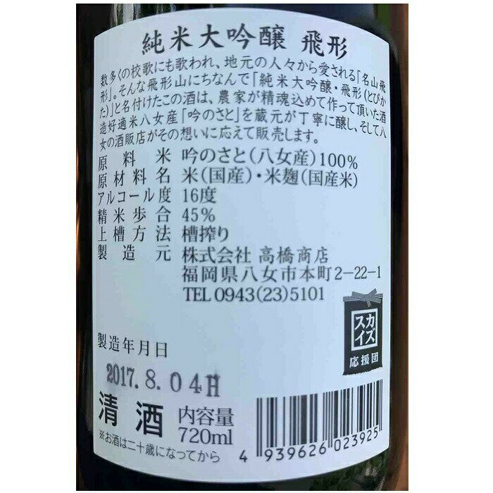 - 【ふるさと納税】【ギフト対応可】<純米大吟醸>飛形・<はだか麦焼酎>酣酣楽楽1.8Lセット 日本酒 お酒 福岡 八女 地酒 焼酎 上品 味わい 限定流通 父の日 お祝い お礼 ギフト プレゼント