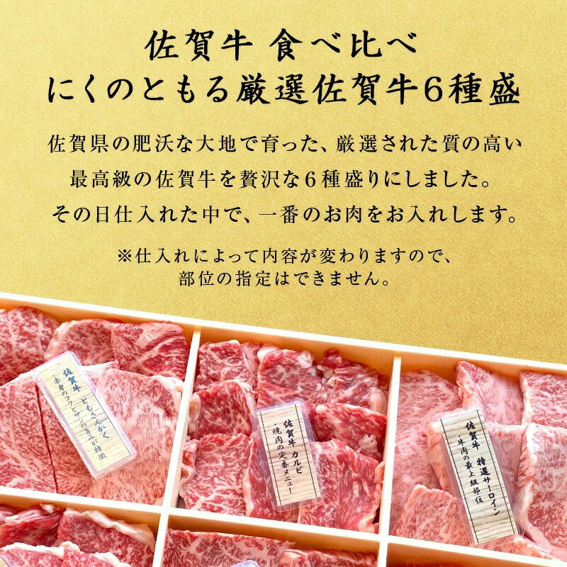 - 【ふるさと納税】佐賀牛希少部位100g×6種類(合計600g)「配送月が選べる」にくのともる厳選 焼肉用 A5〜A4等級 食べ比べ ギフト キャンプ「2025年 令和7年」