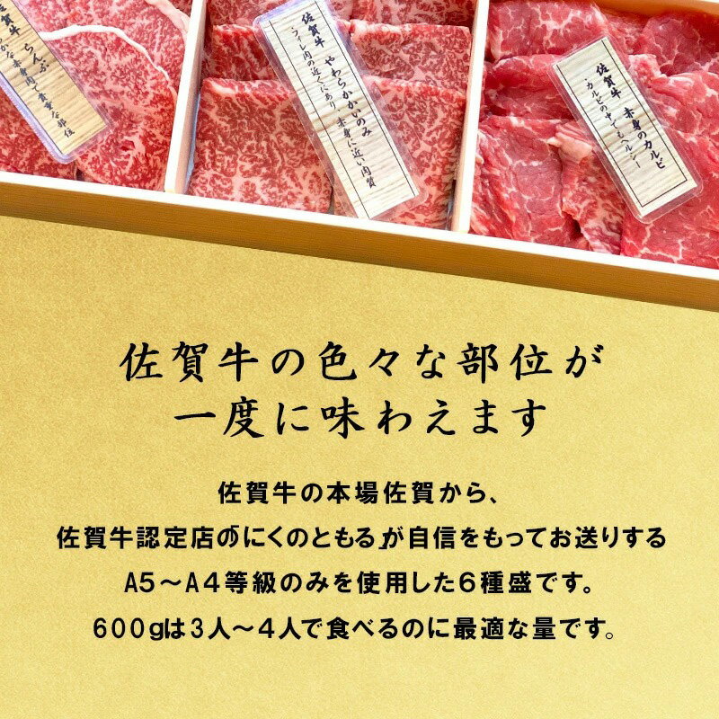 【ふるさと納税】佐賀牛希少部位100g×6種類(合計600g)「配送月が選べる」にくのともる厳選 焼肉用 A5〜A4等級 食べ比べ ギフト キャンプ「2025年 令和7年」