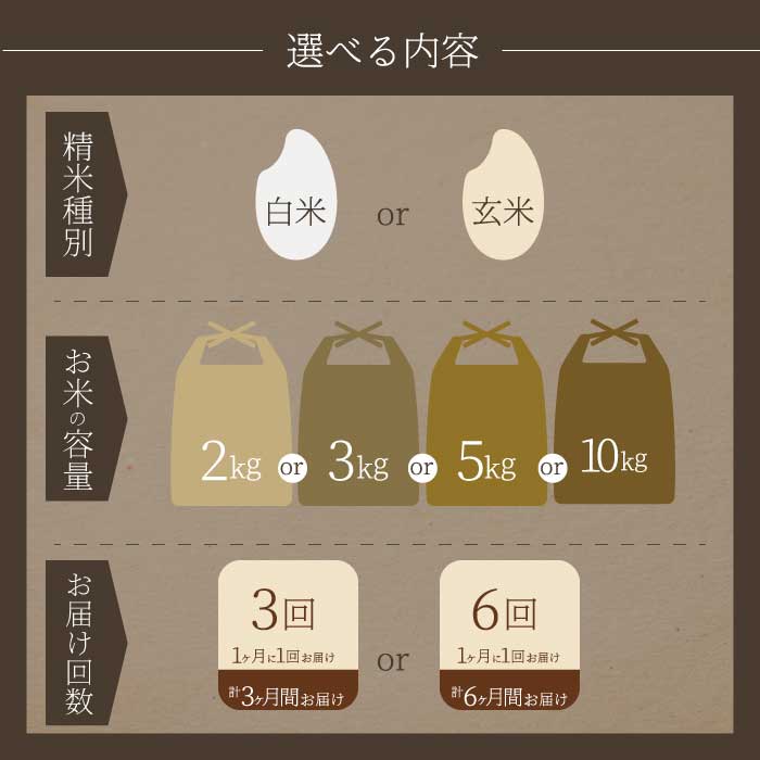 - 【ふるさと納税】《令和7年新米》 みはら高原米 浮城 ~ こしひかり ~ <定期便> 選べる精米種別・容量・回数 白米または玄米 2~10kg 3か月(3回)または6か月(6回) コシヒカリ お米 米 精米 ごはん ご飯 広島県 三原市 220005-r