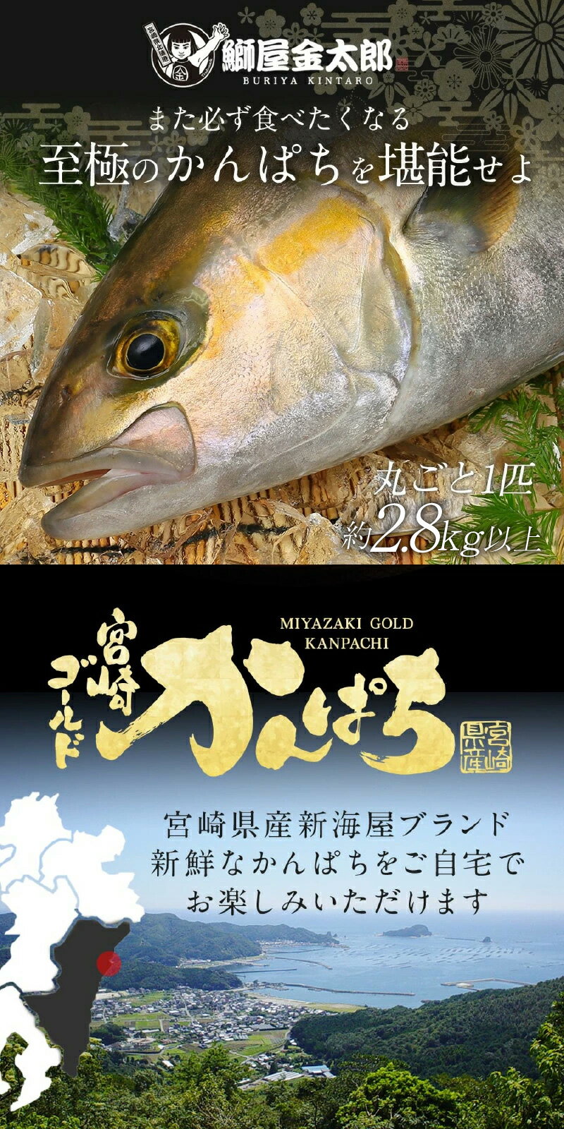 - 【ふるさと納税】刺身 魚 かんぱち 丸ごと 1尾 約 2.8kg 以上 新海屋 鰤屋金太郎 みやざきゴールド エラ 内臓 除去済み 宮崎ゴールドカンパチ 新鮮 鮮度抜群 ぷりぷり コリコリ 活締め脱血 丼 カルパッチョ しゃぶしゃぶ 塩焼き お取り寄せグルメ 送料無料 宮崎県 延岡市