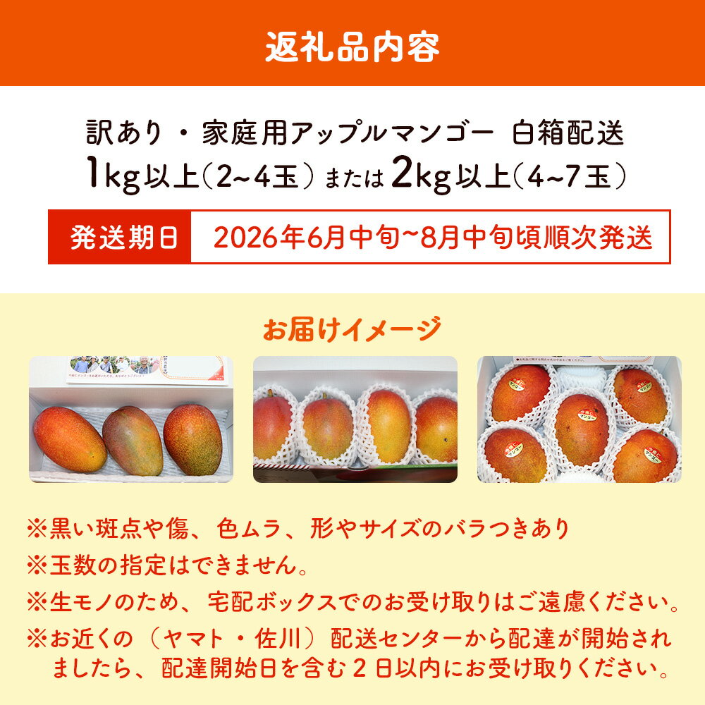 【ふるさと納税】 【訳あり・家庭用】【生産者応援】限定各500セット 今帰仁アップルマンゴー1kg以上 or 2kg以上 (白箱)【2026年6月中旬~8月中旬頃発送】