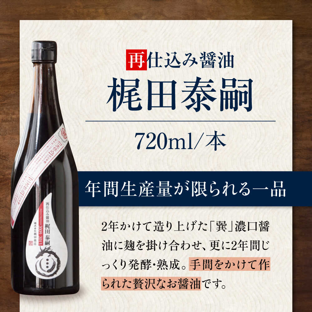 【ふるさと納税】醤油 【単品or選べる定期便】再仕込み醤油 梶田泰嗣 720ml×1 さいしこみしょうゆ 濃厚 旨味 刺身 寿司 冷奴 卓上醤油 本醸造 調味料 醤油 セット 食べ比べ しょう油 濃口 国産 料理 おすすめ 人気 愛媛県大洲市/株式会社梶田商店[AGBB042]