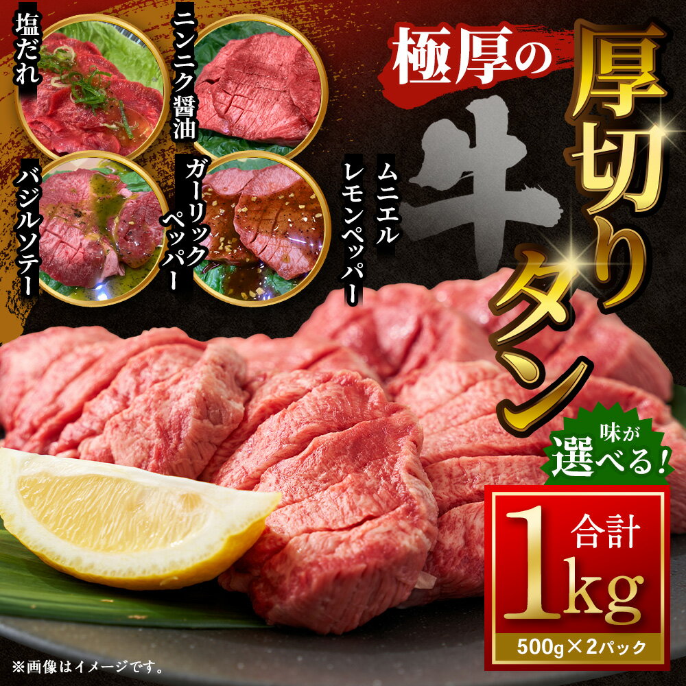 - 【ふるさと納税】【12月下旬以降順次発送】<選べる味> 極厚の厚切りタン 計1kg(500g×2パック) 塩だれ / ニンニク醤油 / ガーリックペッパー / レモンペッパー / バジルソテー / ムニエル 牛タン タン 牛肉 お肉 肉 惣菜 ご飯のお供 おかず 焼肉 焼き肉 BBQ 冷凍