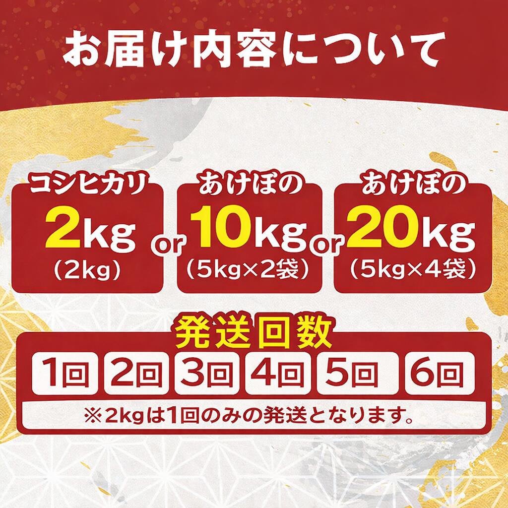 【ふるさと納税】★レビュー高評価★《 選べる内容量 /発送回数/発送月》 こしひかり 2kg /あけぼの 10kg(5kg×2袋)20kg(5kg×4袋)定期便 1回 2回 3回 4回 5回 6回 令和7年産 新米 岡山県産 あけぼの 先行予約 米 こめ kome 定期便 発送時期が選べる 楽天限定