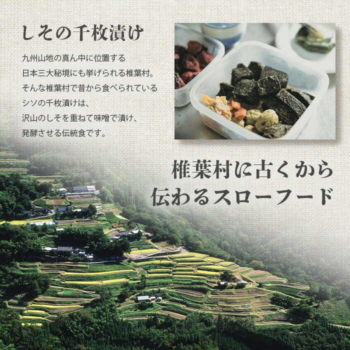 - [1月中発送]【ふるさと納税】【秘境の里 椎葉のお漬物】しその千枚漬け 100g【国産 無添加 漬物 漬け物 焼畑 日持ち 日もち 晩酌 椎葉村 しそ 紫蘇 シソ 千枚漬け ご飯のお供 お酒のお供 ご当地 お土産 手土産 田舎 特産 父 母 敬老 米 朝 昼 夜 弁当 スローフード】
