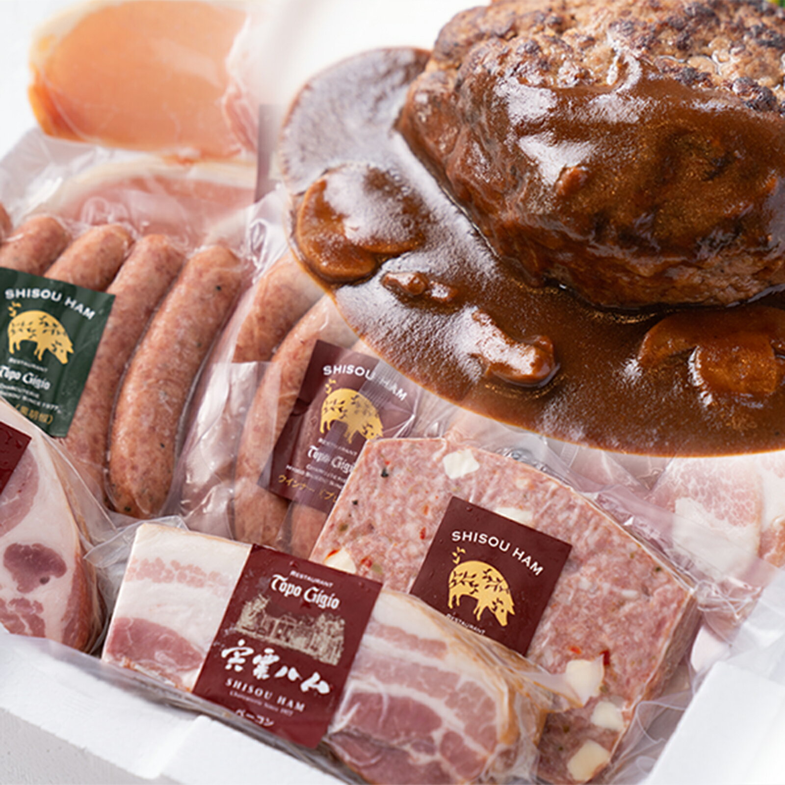 - 【ふるさと納税】但馬牛 ハンバーグ と 宍粟ハム の グルマン セット 【 但馬牛 国産 黒毛和牛 ハム デミグラスソース 冷凍 牛肉 豚肉 贈り物 ギフト 】J27