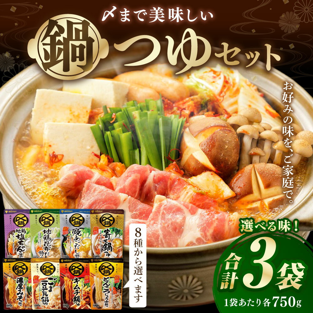 【ふるさと納税】ミツカン mizkan 〆まで美味しい 鍋つゆ 自由に選べる ( 3袋 ) セット 1袋750g 地鶏塩ちゃんこ鍋つゆ 地鶏昆布だし 焼あごだし鍋つゆ 寄せ鍋つゆ 濃厚みそ鍋つゆ ごま豆乳鍋つゆ キムチ鍋つゆ とんこつしょうゆ鍋つゆ スープしゃぶ極みだし 鍋の素 お鍋 鍋