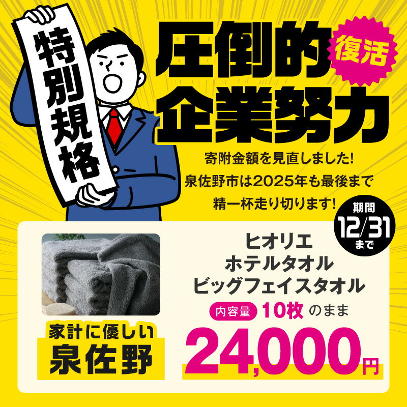 【ふるさと納税】【特別規格 12/31迄】 ★高評価 ヒオリエ ビッグ フェイスタオル 10枚 選べる5色 ホテルタオル 約 40cm × 100cm 綿100% 泉州タオル まとめ買い 瞬間吸水 厚手 日本製 タオル パイル 無地 最強翌日配送 大阪府 泉佐野市 送料無料 圧倒的企業努力