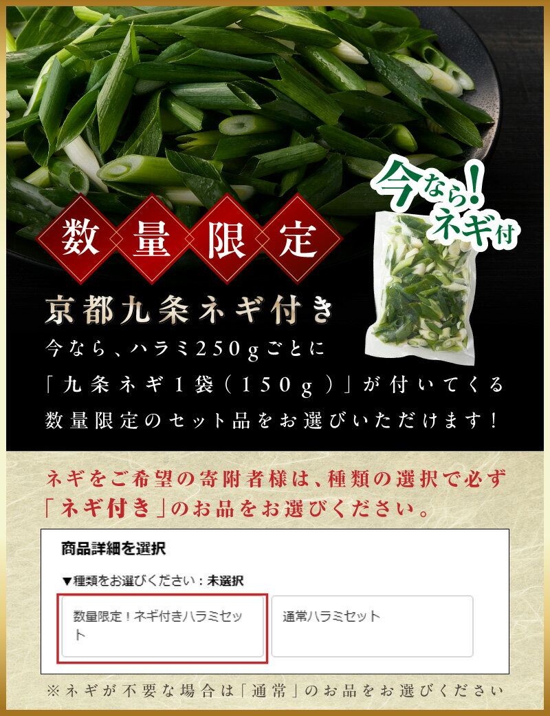 - 【ふるさと納税】 今だけ数量限定!九条ネギ付き!国産牛ハラミ 「京都人気焼肉店」貴重!肉汁溢れる 選べる内容量 (250g・500g・750g) 国産ハラミ 貴重 自家製ダレ プロの味 | 焼肉 牛ハラミ 楽天ふるさと納税 肉 牛肉 BBQ バーベキュー グルメ ホルモン