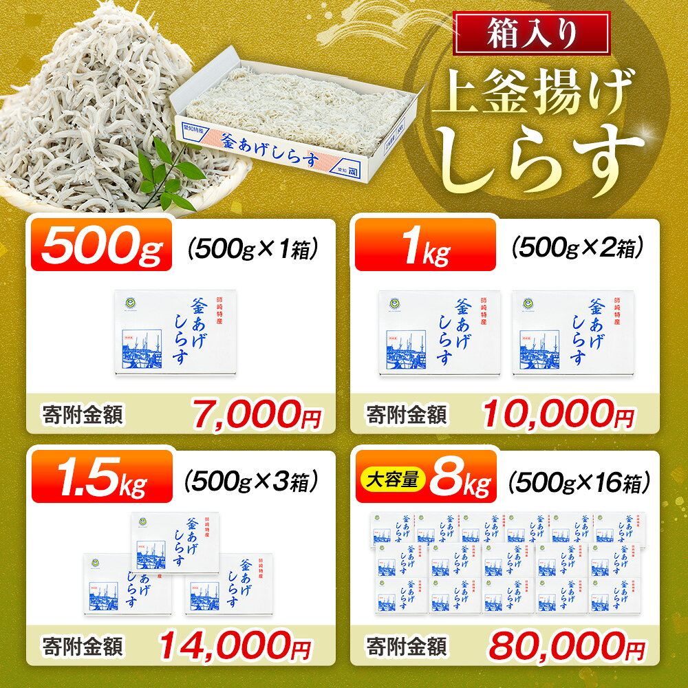 【ふるさと納税】 <圧倒的高評価★4.88> 釜揚げ しらす プレミアム 500g~8kg 箱入り 小分け ふるさと納税 釜揚げ しらす 贈答 贈り物 ギフト 父の日 母の日 プレゼント 冷凍 小分け たっぷり 大容量 国産 本場 惣菜 夕食 晩ごはん おかず シラス丼 愛知県 南知多町