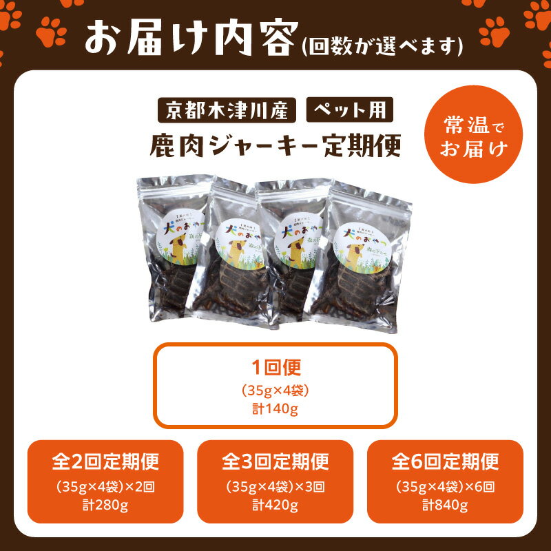 - 【ふるさと納税】【定期便】犬用 鹿肉ジャーキー(35g×4袋)選べる単品!または定期便(2回・3回・6回 ペットフード ドッグフード ジビエ 国産 森の下でproject