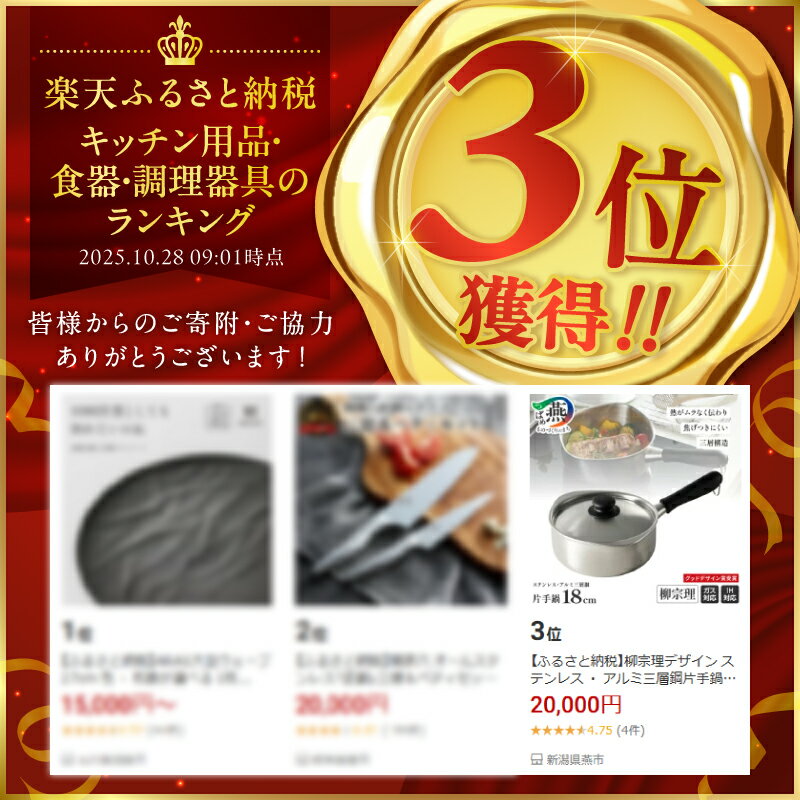 【ふるさと納税】柳宗理デザイン ステンレス ・ アルミ三層鋼片手鍋18cm 柳宗理 IH 対応 鍋 蓋付 ステンレス アルミ 片手鍋 両側注ぎ口 調理器具 キッチン用品 日本洋食器 ランキング 新潟県 燕市 燕三条