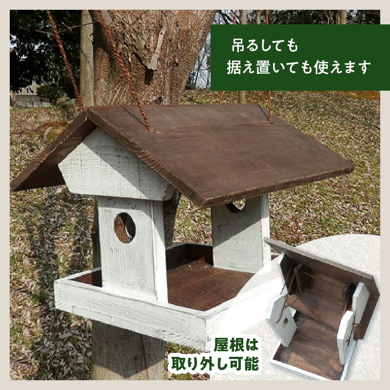 - 【ふるさと納税】エイジングアンティーク調 三角屋根 バードフィーダー 選べる オプション 本体 据え付け用天板 & 杭 セット 鳥 餌台 おうち型 吊るせる 据え置き ガーデニング 雑貨 愛知県 小牧市 送料無料