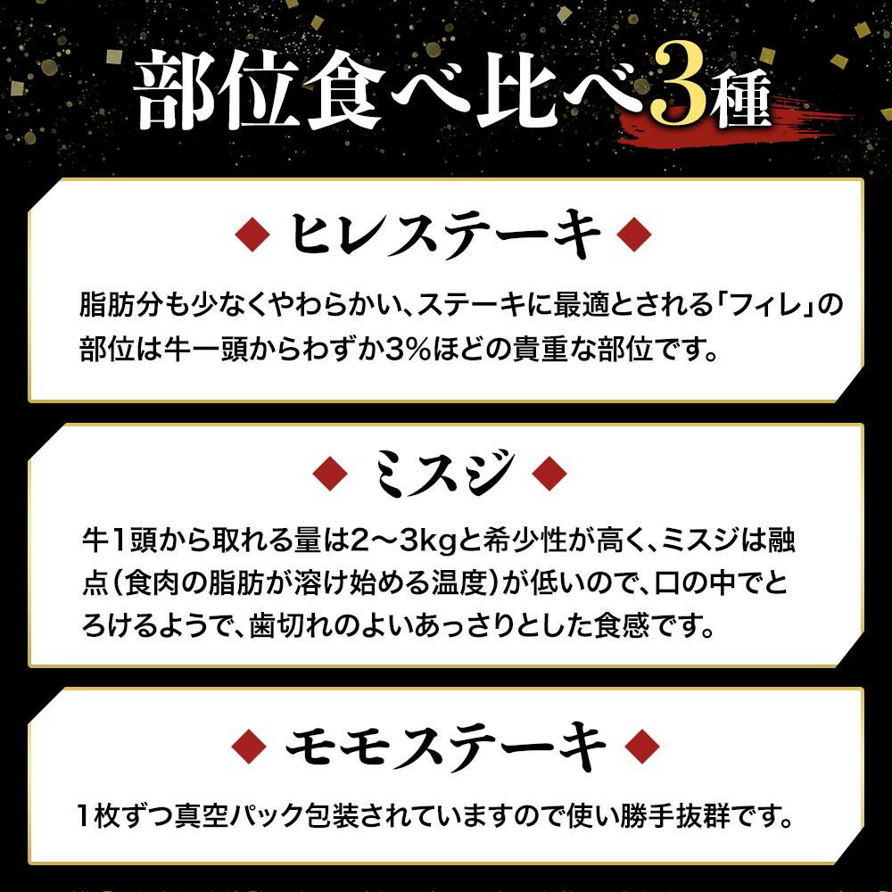 - 【ふるさと納税】〈選べるお届け内容〉博多和牛【A4~A5】ステーキ部位食べ比べ3種(ヒレ、ミスジ、モモ) | 肉 お肉 にく 食品 博多和牛 人気 おすすめ 送料無料 ギフト