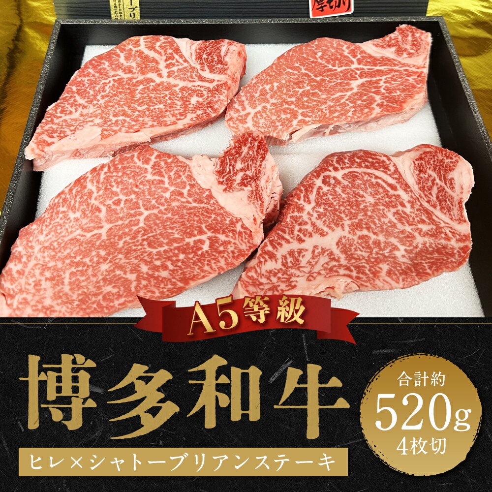【ふるさと納税】牛肉 A5等級 博多和牛 ヒレ シャトーブリアン ステーキ 4枚 520g [一千也フーズ 福岡県 宇美町 um40azp140000] 肉 和牛 ヒレ シャトーブリアン 福岡県産 冷凍