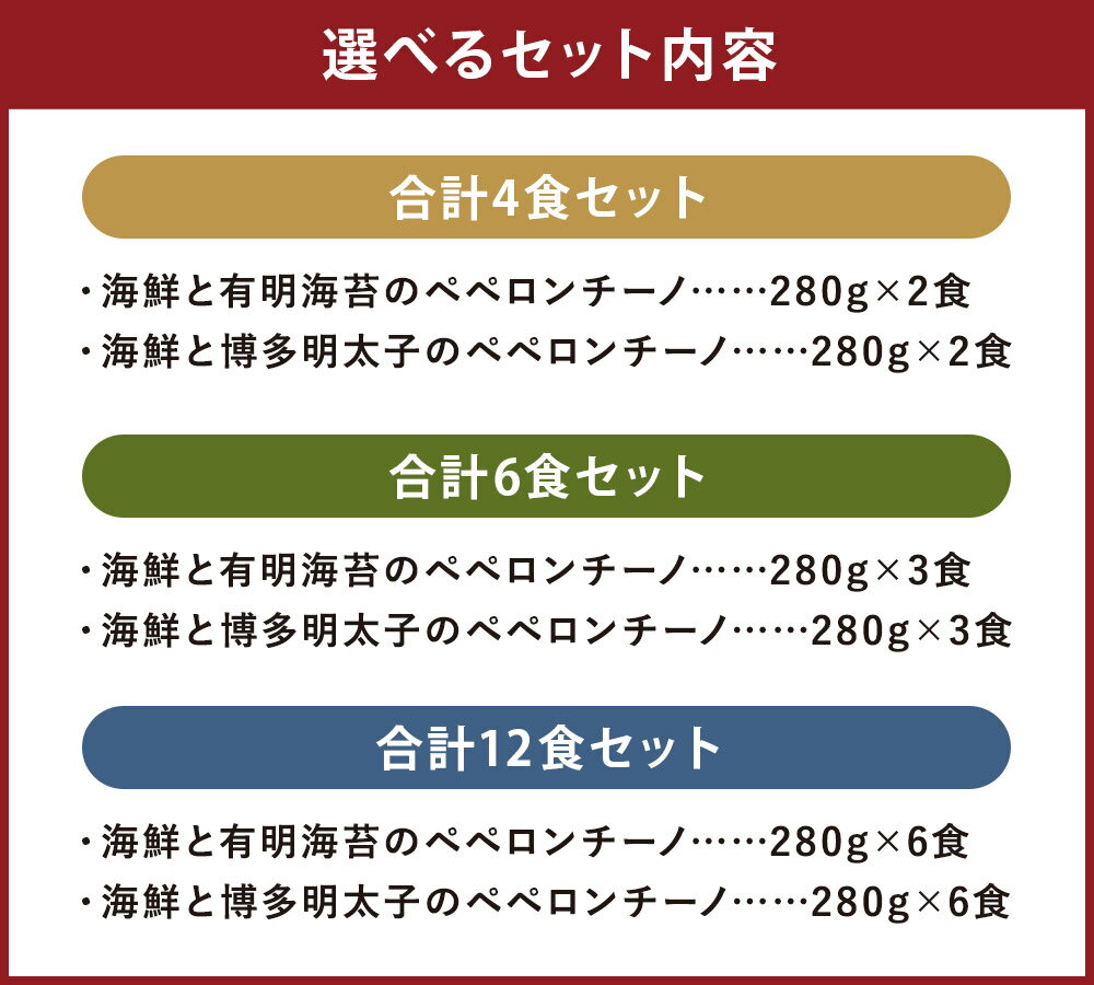 - 【ふるさと納税】【内容量が選べる】 魚屋がパスタ 4食 / 6食 / 12食 セット (280g×2種類) 麺 パスタ ペペロンチーノ 海鮮 有明海苔 博多明太子 惣菜 冷凍 福岡県 柳川市 送料無料