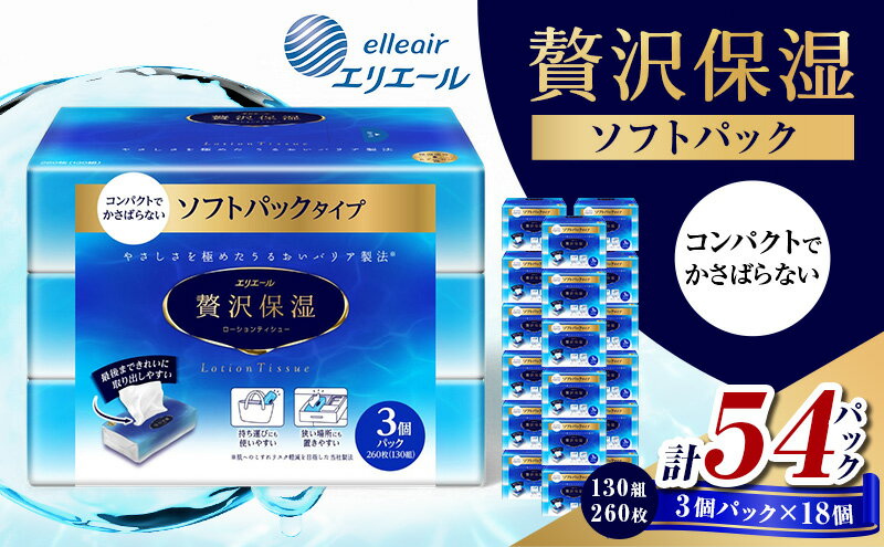 - 【ふるさと納税】エリエール 贅沢保湿 ソフトパック 計54パック (3P×18個)もしくは(6P×9個) セット ティッシュペーパー ティシュー 保湿 保湿ティッシュ 日用品 消耗品 備蓄 防災 静岡 静岡県 島田市 お届け:※お品ご到着までにお時間をいただく場合がございます