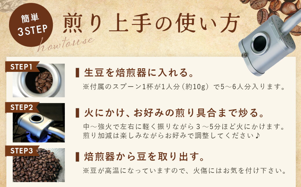 【ふるさと納税】コーヒー豆焙煎器「煎り上手」お試しセット(2種の生豆付き)